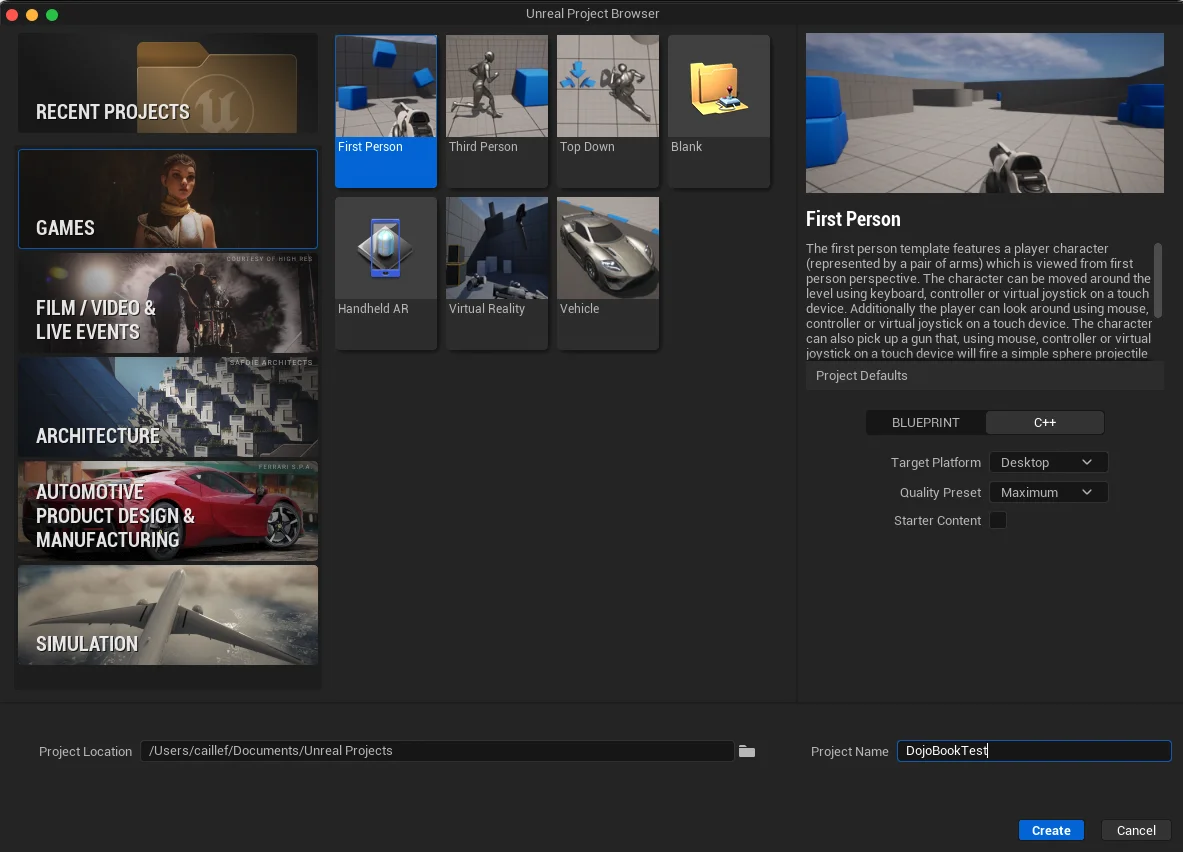 Launch Unreal Engine 5 and create a new project or open an existing one where you will implement dojo.unreal.